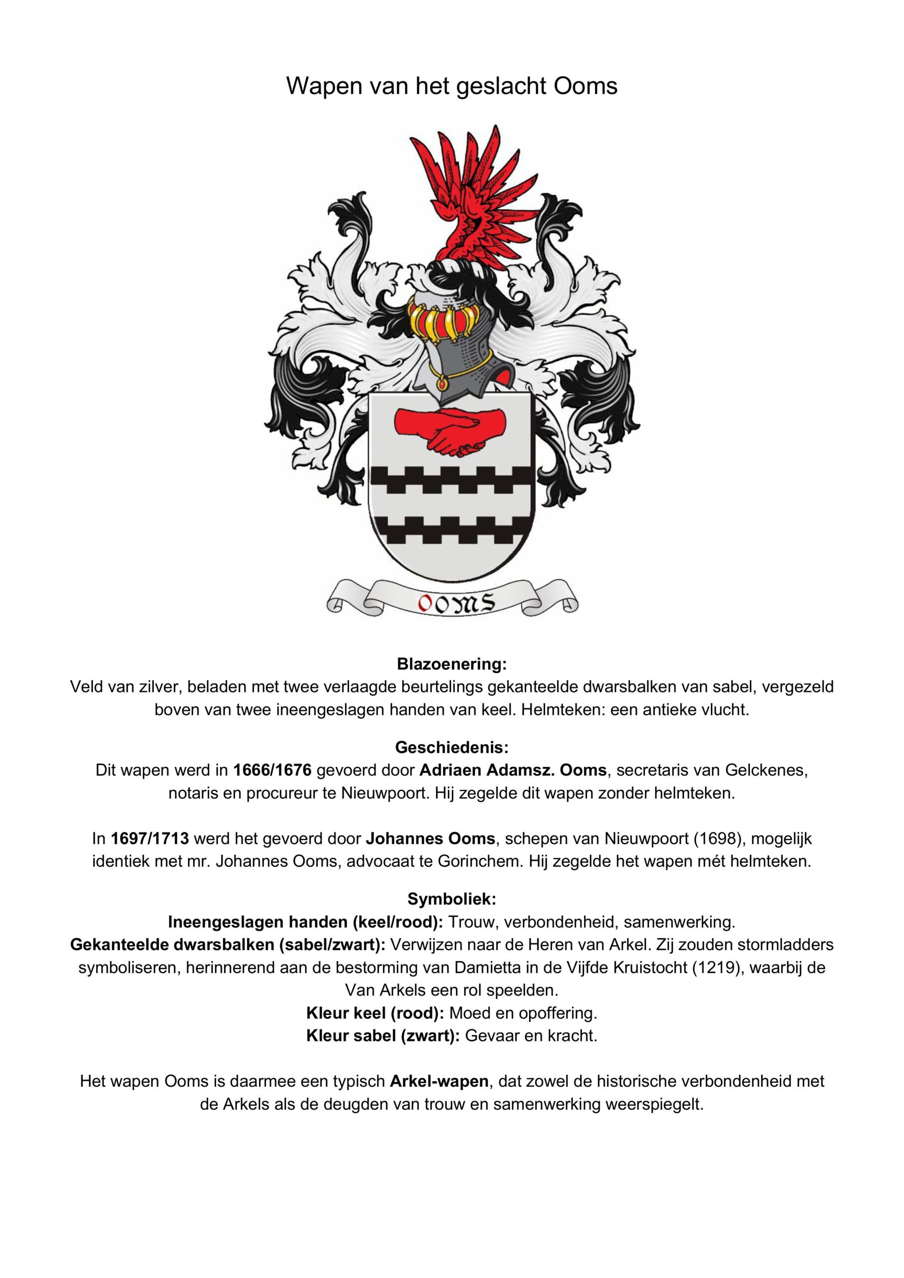 Het geslacht Ooms vindt zijn oorsprong in Groot-Ammers en Nieuwpoort.